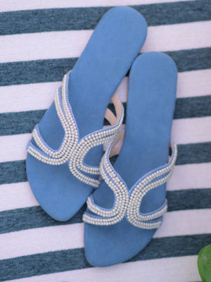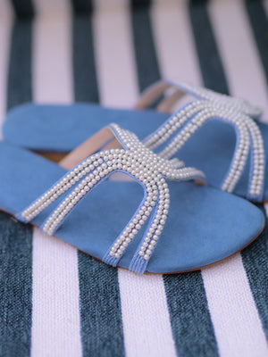 Indulge in the delicate artistry of our Azure Pearl Flats — where timeless hand embroidery meets modern sophistication. Designed to make every step a statement, these flats feature intricate pearl embellishments set against a serene blue canvas, promising elegance with every stride.