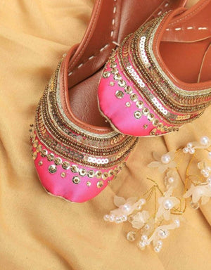 showered with arcs of gold sequins, cutdana, and beads giving a layered, festive look. It’s