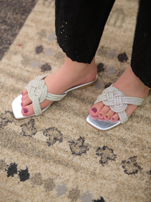 understated luxury to every step. Crafted with a soft woven upper in a delicate ivory hue,these flats feature an intricate knot design that exudes effortless charm.