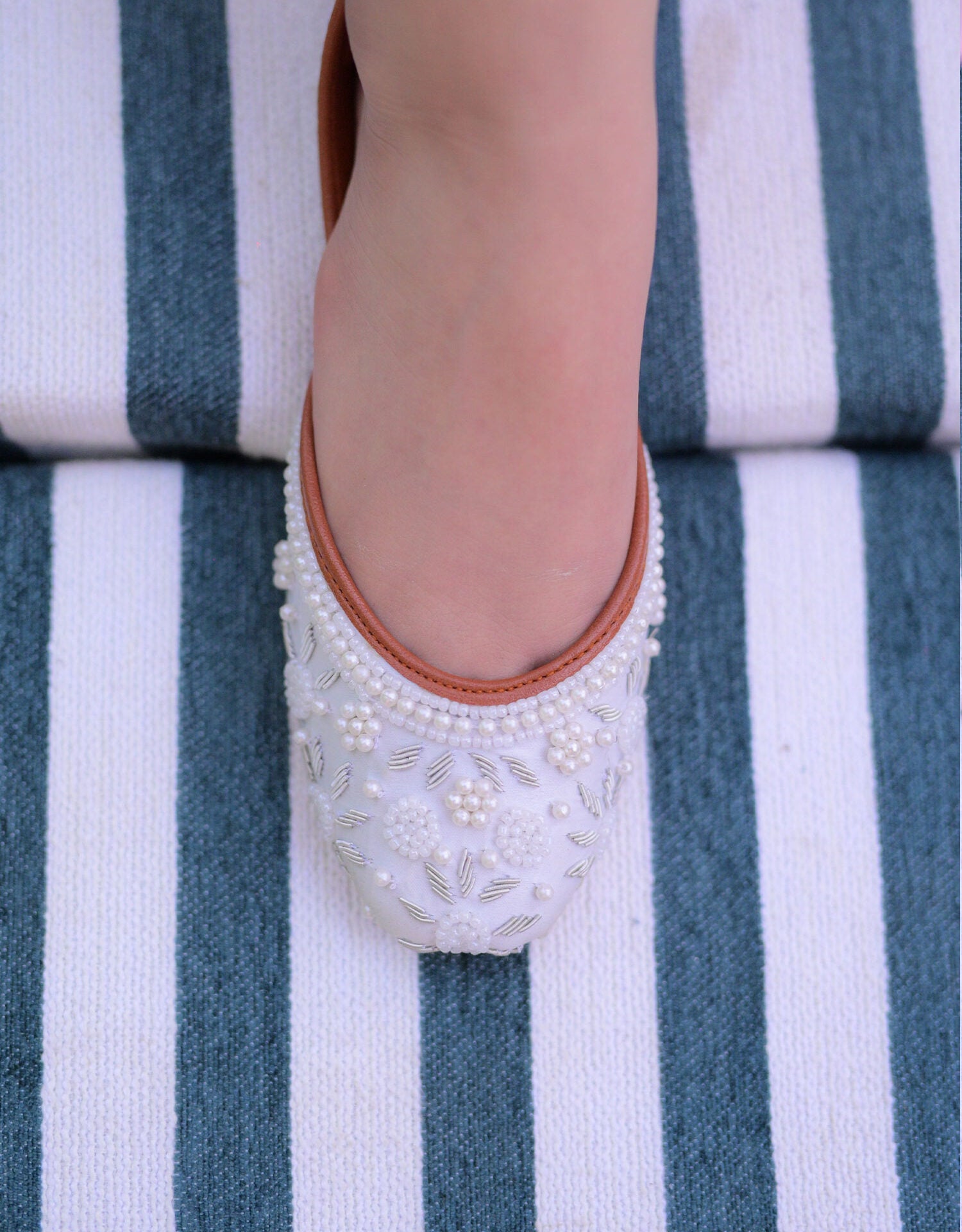 White Jutti with All-Over Pearl & Bead Embroidery