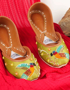 Beautiful Parakeets are in motion, embroidered in multi , accentuated with glass black beaks , gold nalki ,beautiful sequins & intricate thread work, to bind together a story of your dreams it !